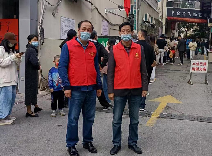 副書記陳華、黨員劉志華居住在高風(fēng)險(xiǎn)小區(qū)內(nèi),但是他們無(wú)懼風(fēng)險(xiǎn),主動(dòng)請(qǐng)纓,負(fù)責(zé)值守被封控的樓棟,確保疫情阻斷在網(wǎng)格內(nèi)。